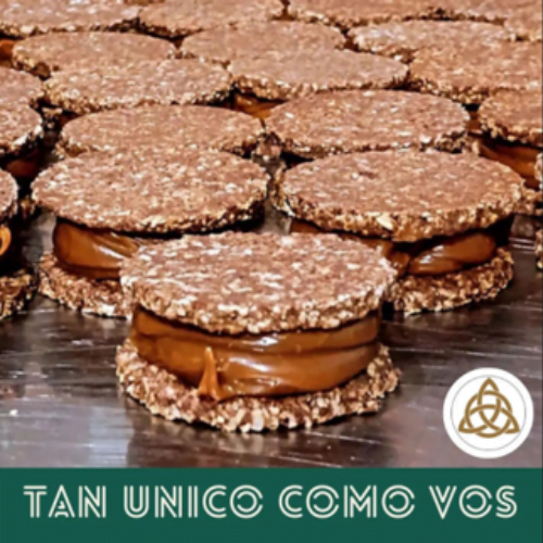 *Alfajor con AVENA relleno de DULCE DE LECHE, cubierto de chocolate con leche.